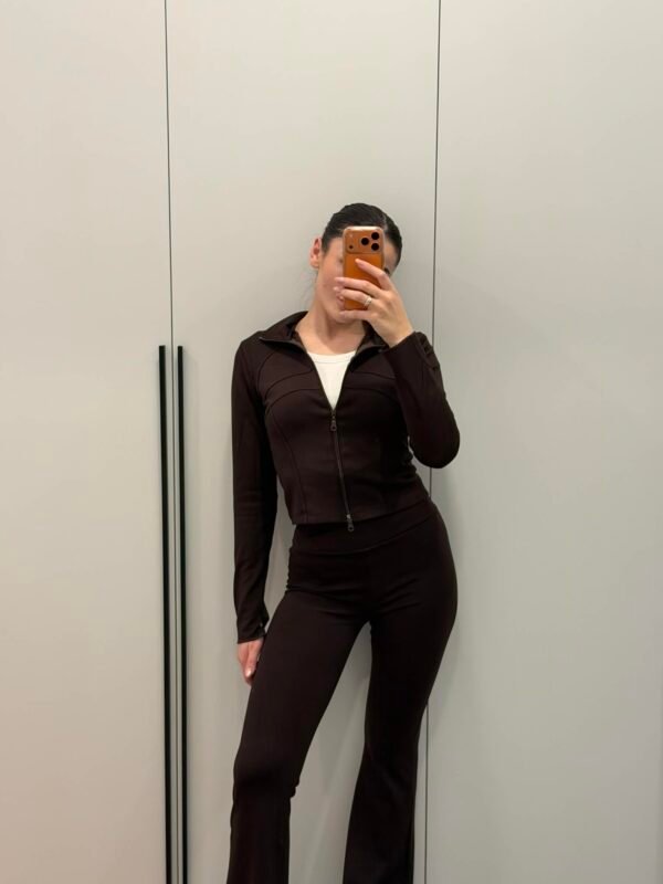 Tamsiai rudas dirbtinės odos švarkelis su užtrauktuku