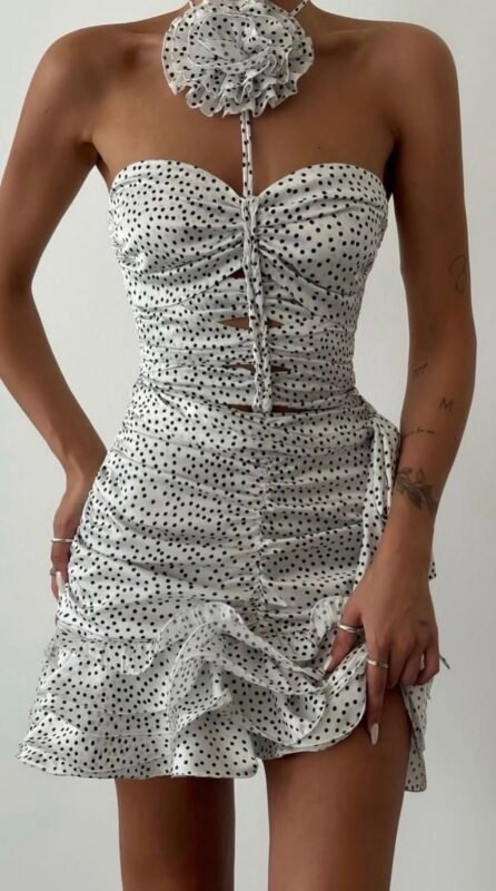 Kontrastas tarp laisvos apačios ir labiau prigludusio viršaus sukuria balansą. Paprasta, bet labai efektyvu.