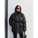 Atviromis kišenėmis, priekyje surišama pūsta striukė